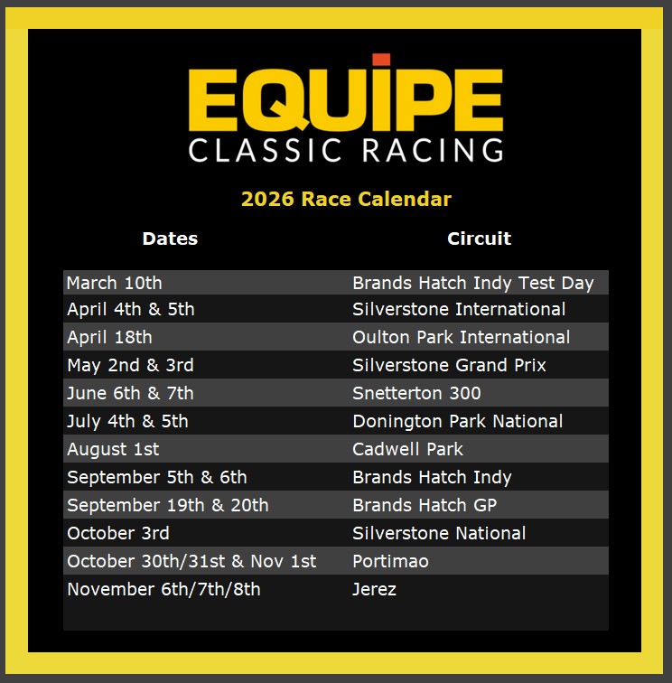 Equipe 2026 membership is now open as are all 2026 races. Go to https://equipeclassicracing.co.uk to register and enter any races.