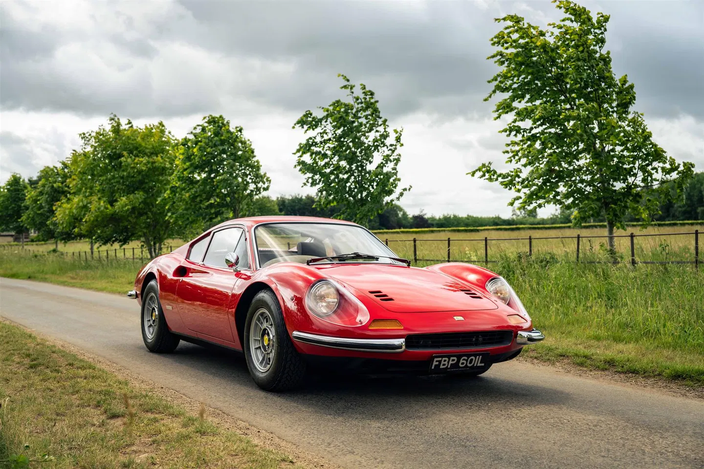 A very nice right hand drive UK delivered Dino which retains its matching numbers and remains faithful to its original specification, finished in Rosso Corsa 20-R -190 with Nero 161 vinyl interior. As detailed in an email on file from Ferrari historian Marcel Massini the car was completed at Maranello on the 6th September 1972 then sold via UK Ferrari dealer Hares in October of that year. The Dino has covered only 32,000 miles in the hands of 6 owners from new and it is in excellent order in all respects having been used sparingly and maintained by Ferrari specialists following a full restoration completed by the renowned Dino expert Nick Cartwright and Moto Technique in 1995.
